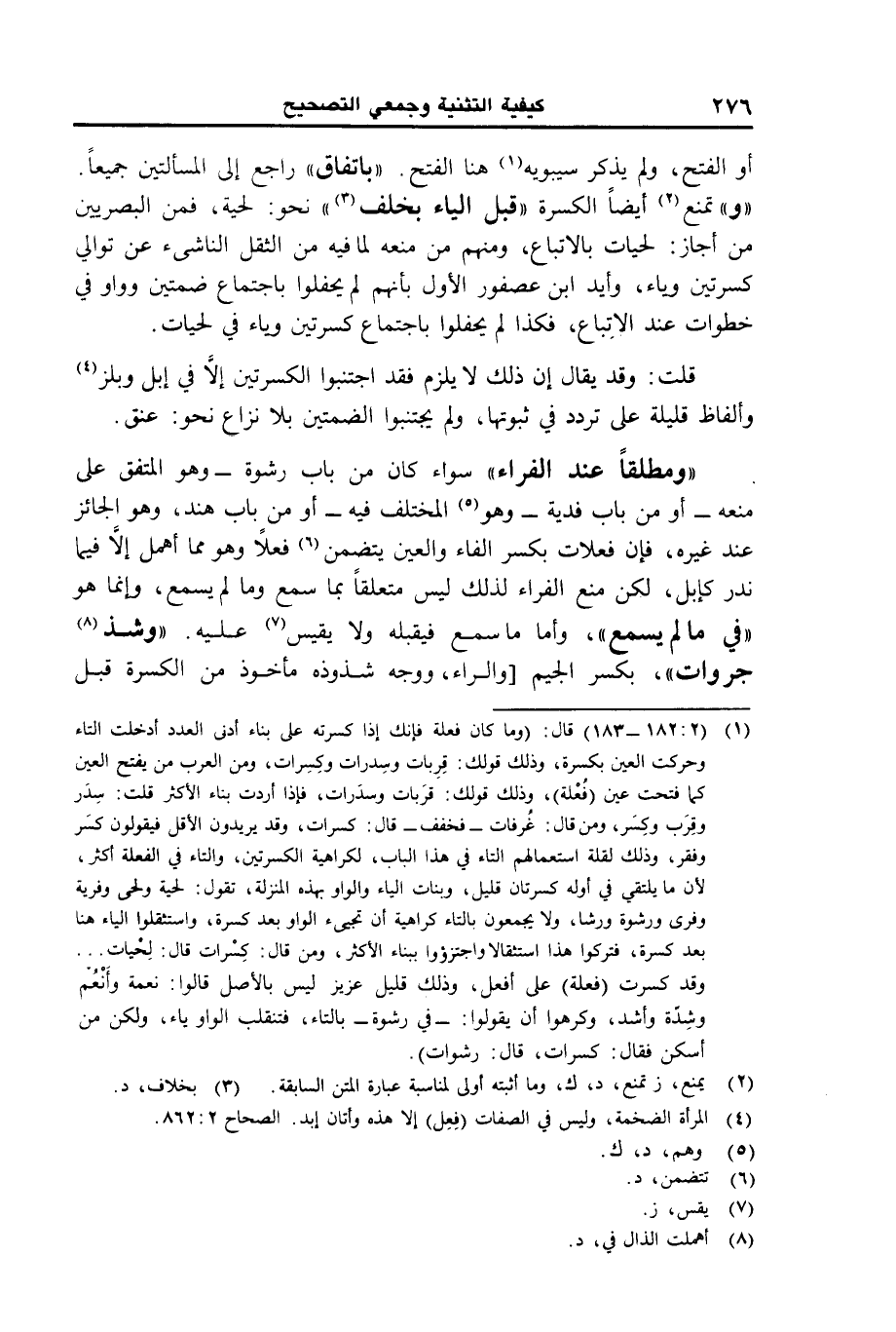 "ومطلقا عند الفراء" سواء كان من باب رشوة –وهو المتفق على منعه- أو من باب فدية- وهو المختلف فيه- أو من باب هند، وهو الجائز عند غيره، فغن فعلات بكسر الفاء والعين يتضمن فعلا وهو مما أهمل إلا فيما ندر كإبل، لكن منع الفراء لذلك ليس متعلقا بما سمع وما لم يسمع، وإنما هو "في ما لم يسمع"، وأما ما سمع فيقبله ولا يقيس عليه. "وشذ جروات"، بكسر الجيم [والراء ووجه شذوذه مأخوذ من الكسرة قبل