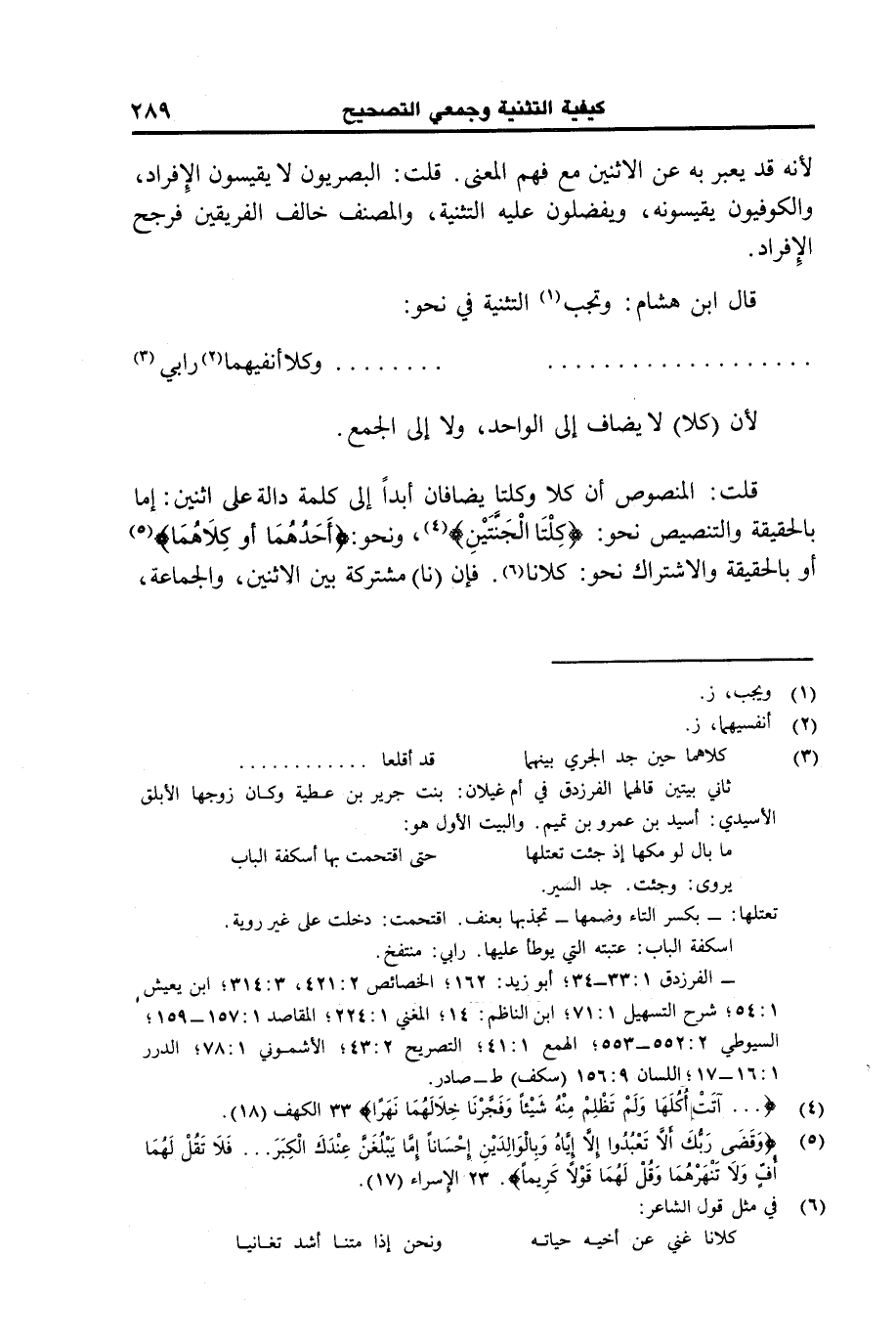 قلت: المنصوص أن كلا وكلتا يضافان أبدا إلى كلمة دالة على اثنين: إما بالحقيقة والتنصيص نحو: {كلتا الجنتين}، ونحو: {أحدهما أو كلاهما} أو بالحقيقة والاشتراك نحو: كلانا. فإن (نا) مشتركة بين الاثنين، والجماعة،