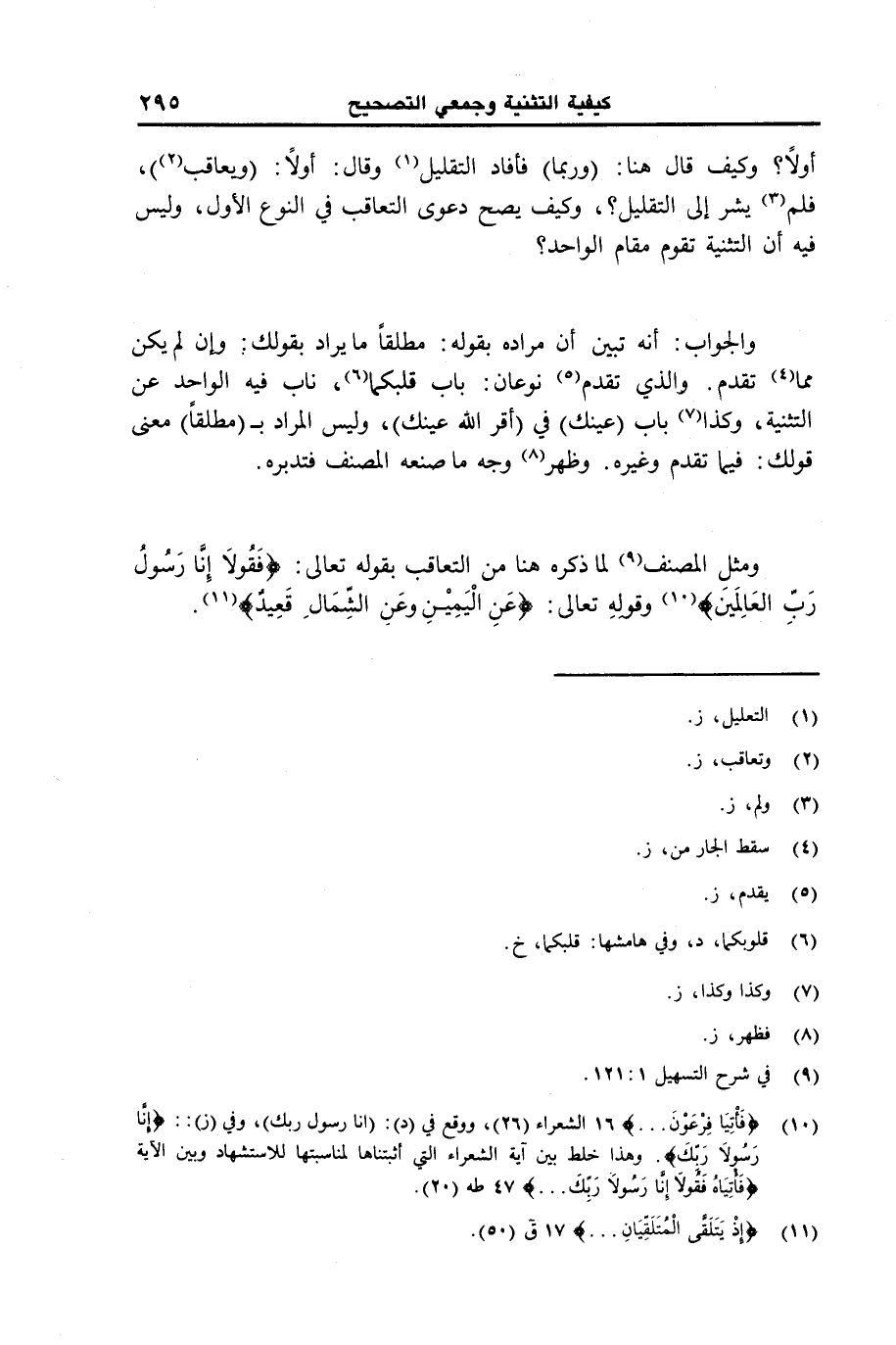 أولا؟ وكيف قال هنا: (وربما) فأفاد التقليل وقال: أولا: (ويعاقب)، فلم يشر إلى التقليل؟ ، وكيف يصح دعوى التعاقب في النوع الأول، وليس فيه أن التثنية تقوم مقام الواحد؟