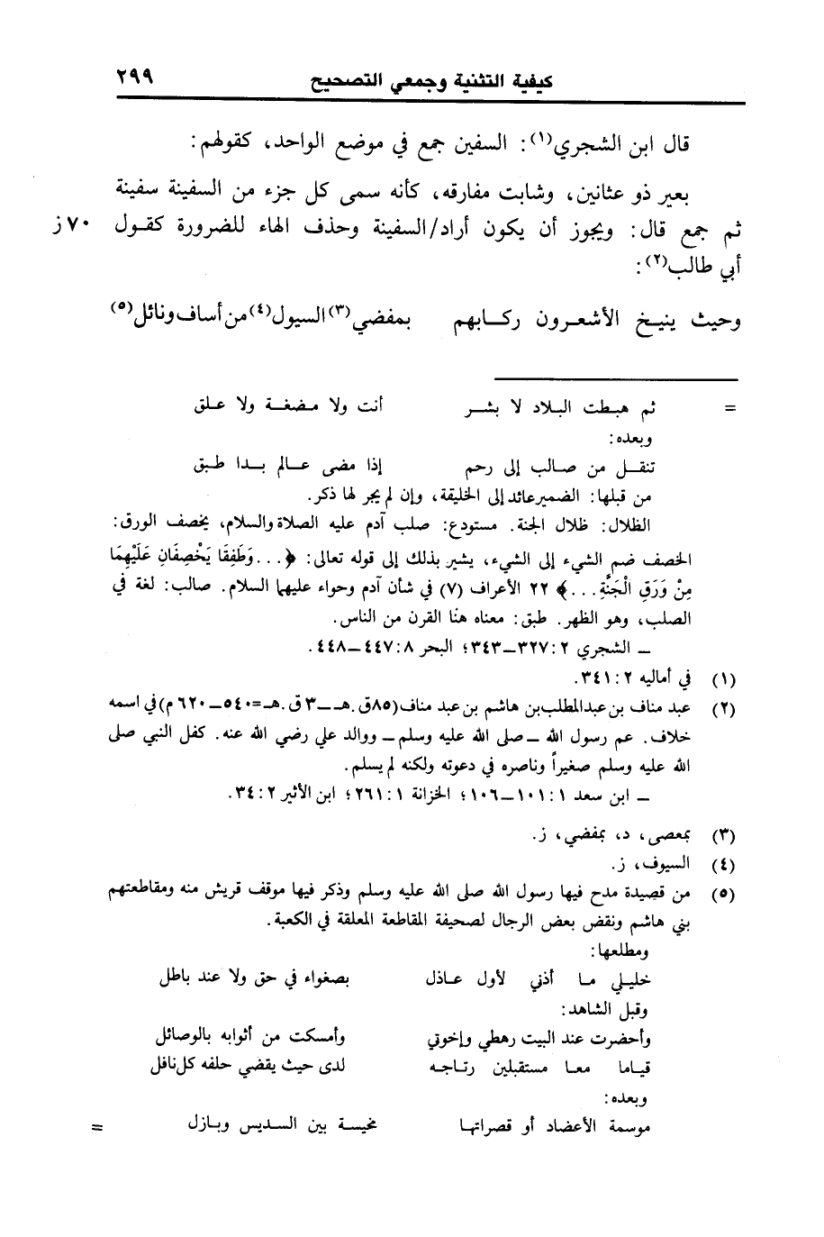قال ابن الشجري: السفين جمع في موضع الواحد، كقولهم: