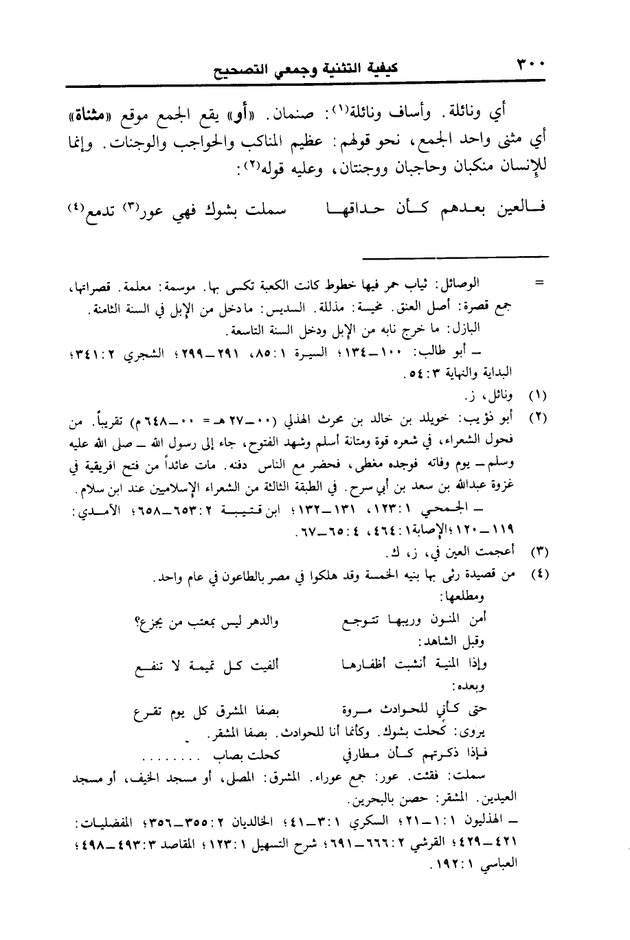أي ونائلة. وأساف ونائلة: صنمان. "أو" يقع الجمع موقع "مثناة" أي مثنى واحد الجمع، نحو قولهم: عظيم المناكب والحواجب والوجنات. وإنما للإنسان منكبان وحاجبان ووجنتان، وعليه قوله:
