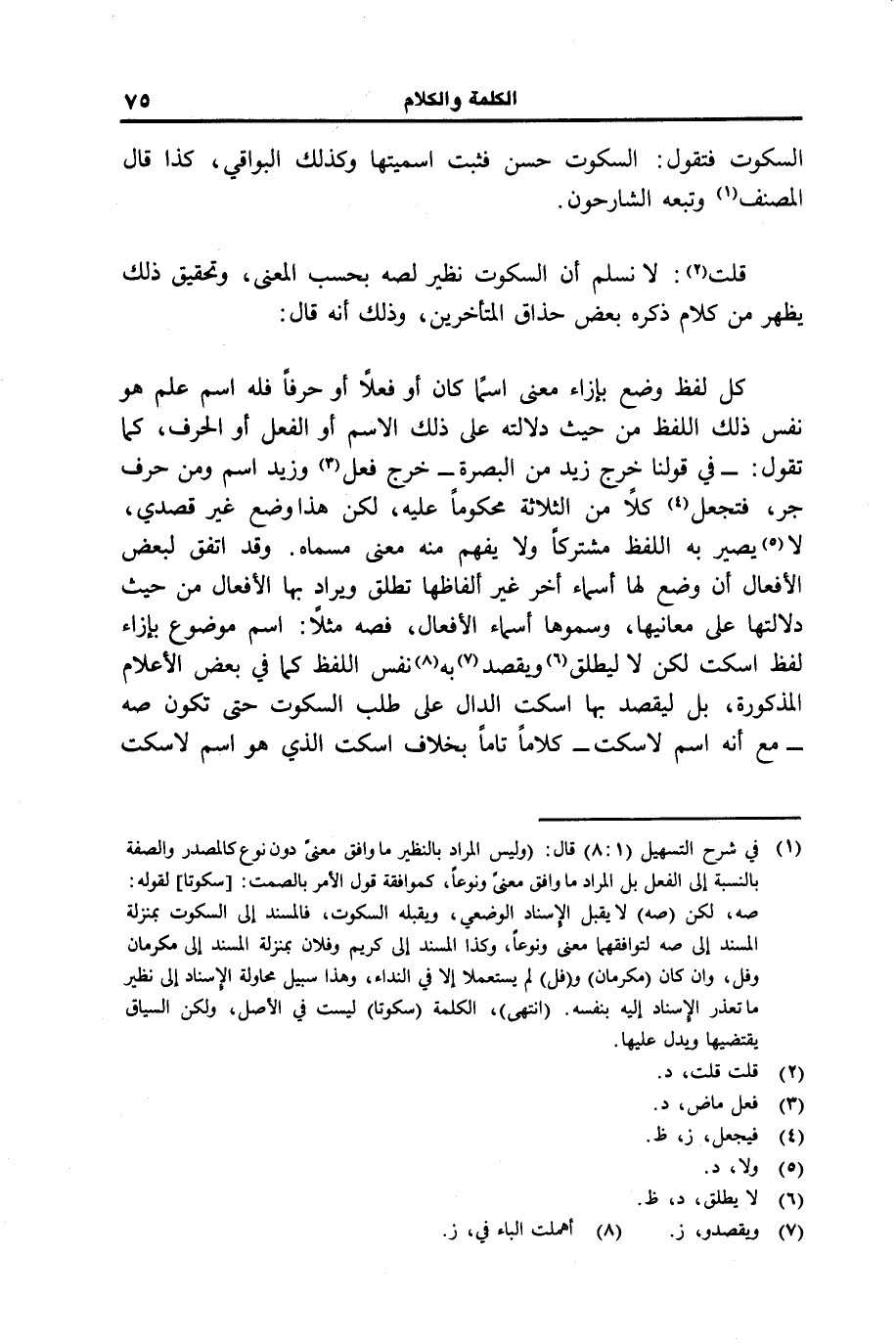 قلت: لا نسلم أن السكوت نظير لصه بحسب المعنى، وتحقيق ذلك يظهر من كلام ذكره بعض حذاق المتأخرين، وذلك أنه قال: