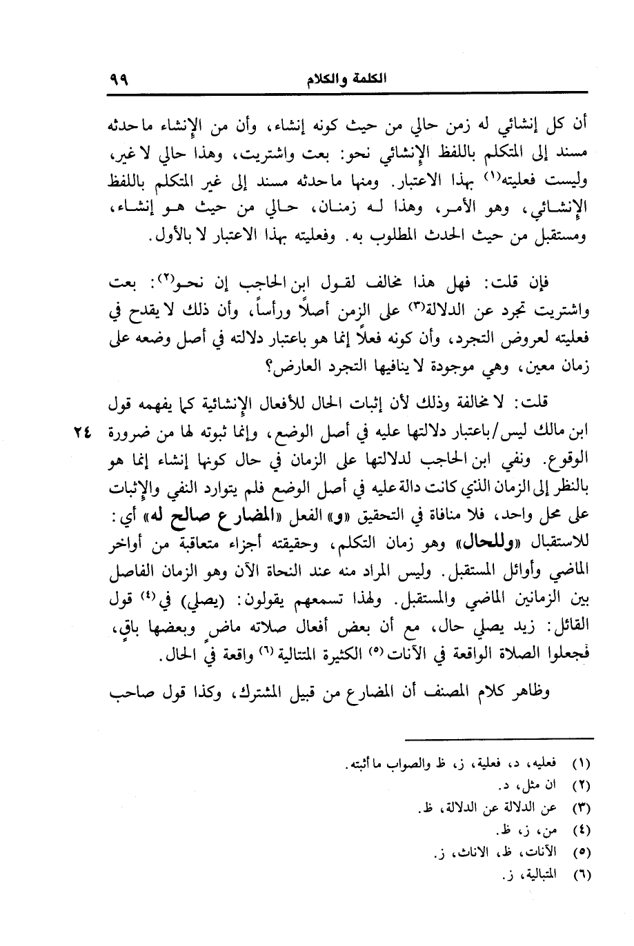 ومنها ما حدثه مسند إلى غير المتكلم باللفظ الإنشائي، وهو الأمر، وهذا له زمان، حالي من حيث هو إنشاء، ومستقبل من حيث الحدث المطلوب به. وفعليته بهذا الاعتبار لا بالأول.
