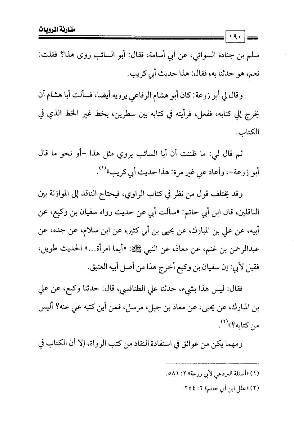 (¬١) «أسئلة البرذعي لأبي زرعة» ٢: ٥٨١.