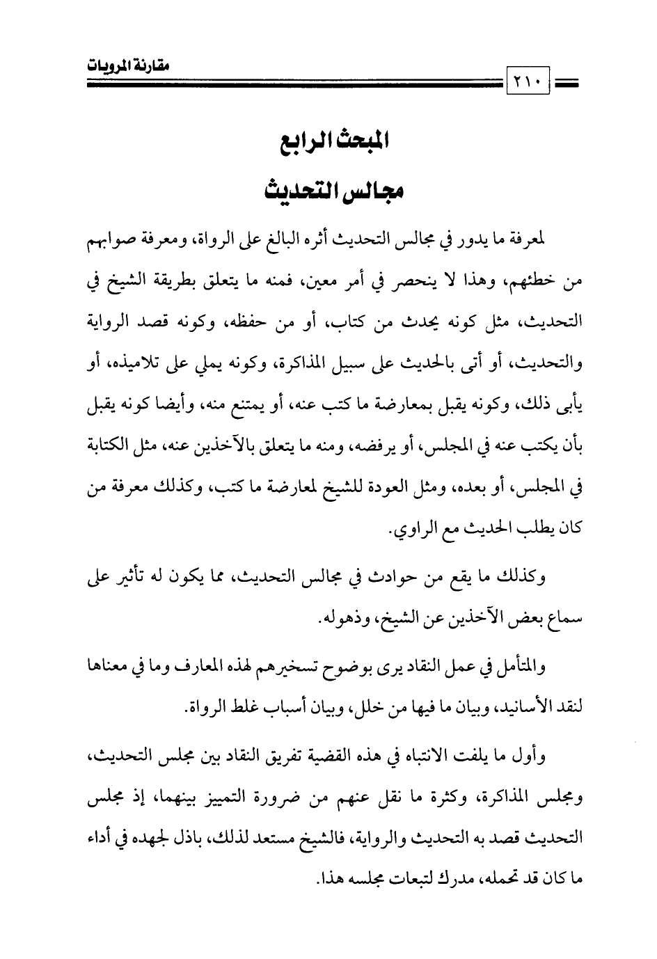 وأول ما يلفت الانتباه في هذه القضية تفريق النقاد بين مجلس التحديث، ومجلس المذاكرة، وكثرة ما نقل عنهم من ضرورة التمييز بينهما، إذ مجلس التحديث قصد به التحديث والرواية، فالشيخ مستعد لذلك، باذل لجهده في أداء ما كان قد تحمله، مدرك لتبعات مجلسه هذا.