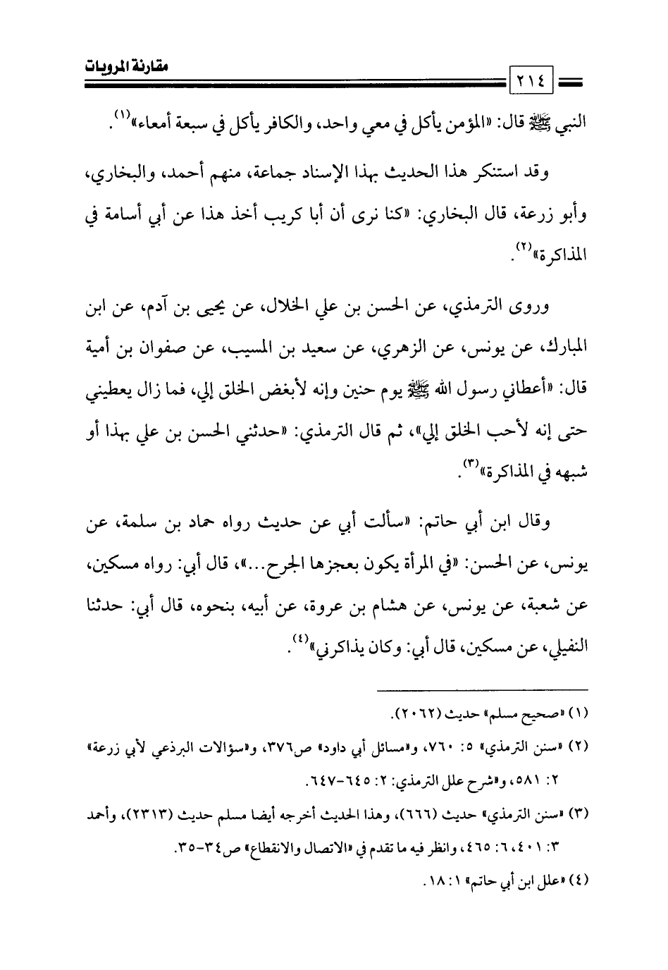(¬٣) «سنن الترمذي» حديث (٦٦٦)، وهذا الحديث أخرجه أيضا مسلم حديث (٢٣١٣)، وأحمد ٣: ٤٠١، ٦: ٤٦٥، وانظر فيه ما تقدم في «الاتصال والانقطاع» ص ٣٤ - ٣٥.