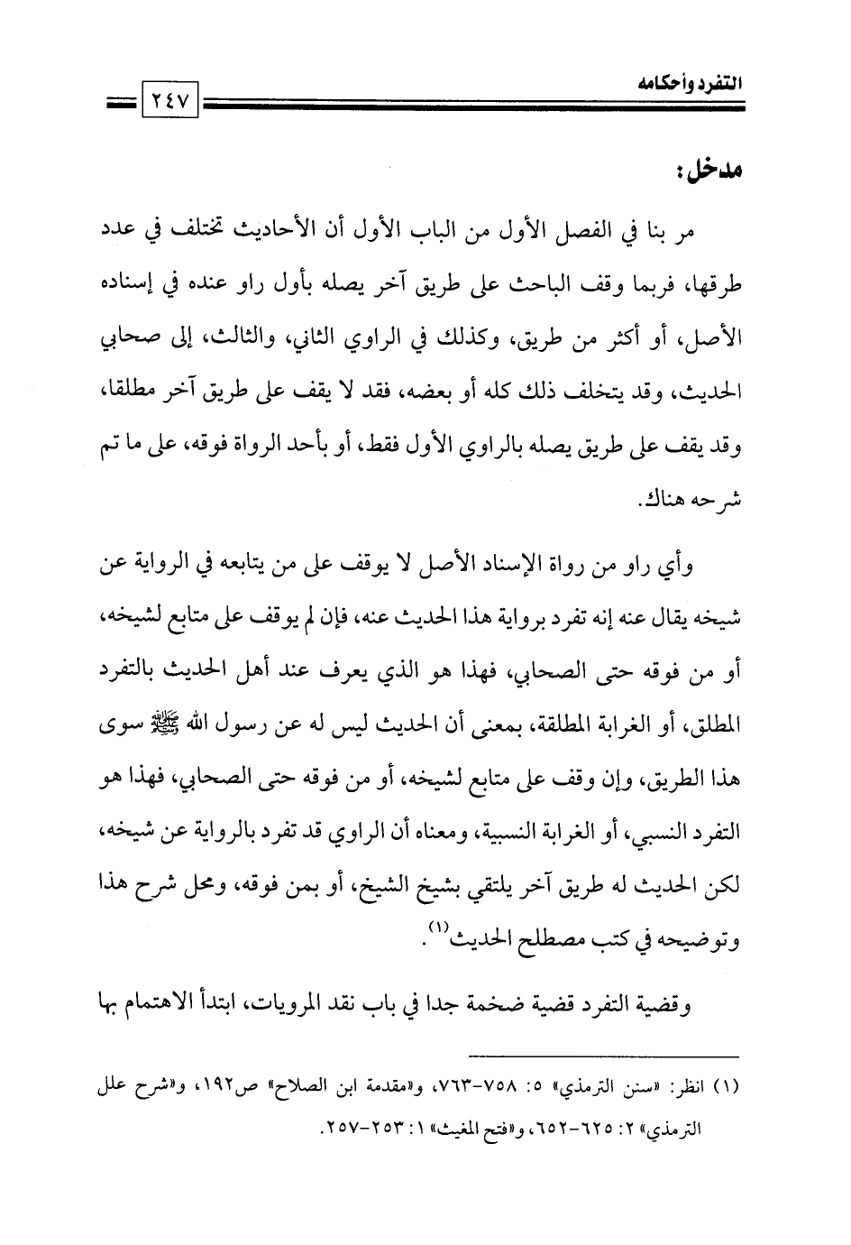 وقضية التفرد قضية ضخمة جدا في باب نقد المرويات، ابتدأ الاهتمام بها