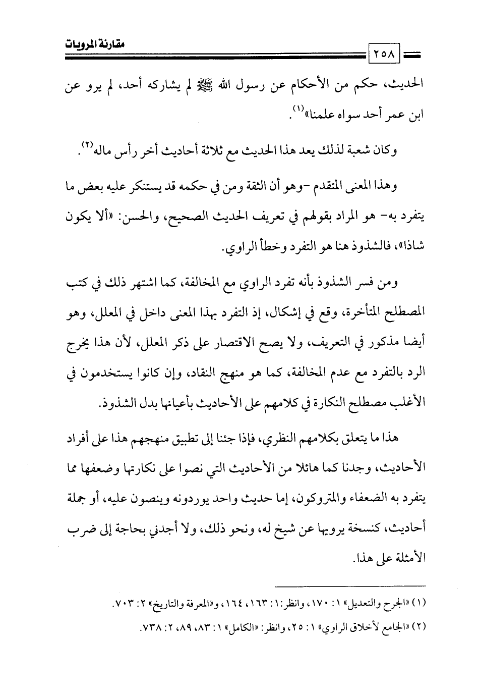 (¬٢) «الجامع لأخلاق الراوي» ١: ٢٥، وانظر: «الكامل» ١: ٨٣، ٨٩، ٢: ٧٣٨.