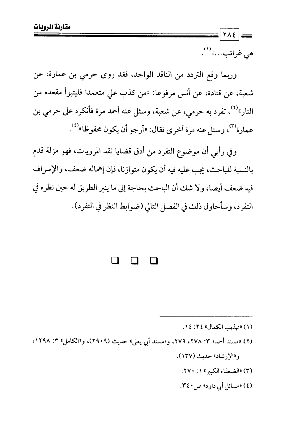 وفي رأيي أن موضوع التفرد من أدق قضايا نقد المرويات، فهو مزلة قدم بالنسبة للباحث، يجب عليه فيه أن يكون متوازنا، فإن إهماله ضعف، والإسراف فيه ضعف أيضا، ولا شك أن الباحث بحاجة إلى ما ينير الطريق له حين نظره في التفرد، وسأحاول ذلك في الفصل التالي (ضوابط النظر في التفرد).