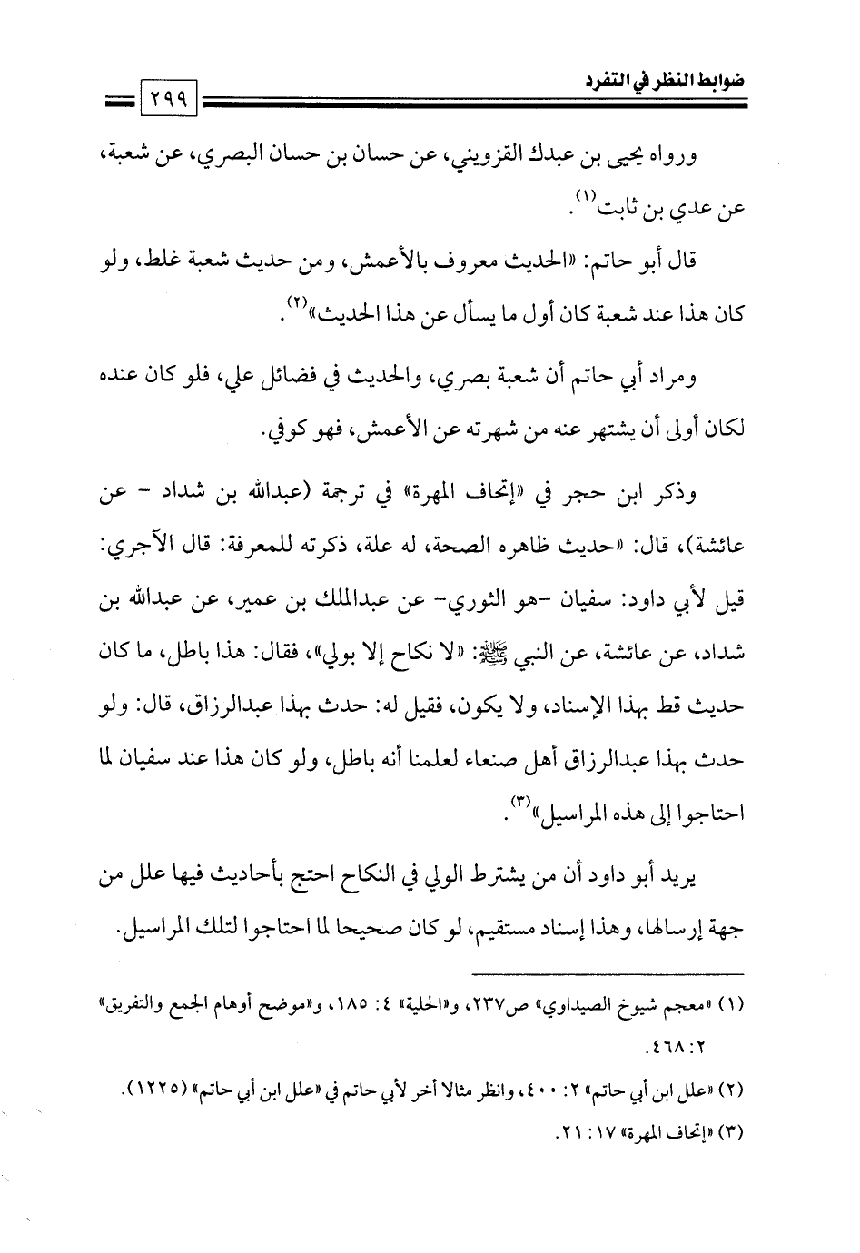 (¬٢) «علل ابن أبي حاتم» ٢: ٤٠٠, وانظر مثالا أخر لأبي حاتم في «علل ابن أبي حاتم» (١٢٢٥).