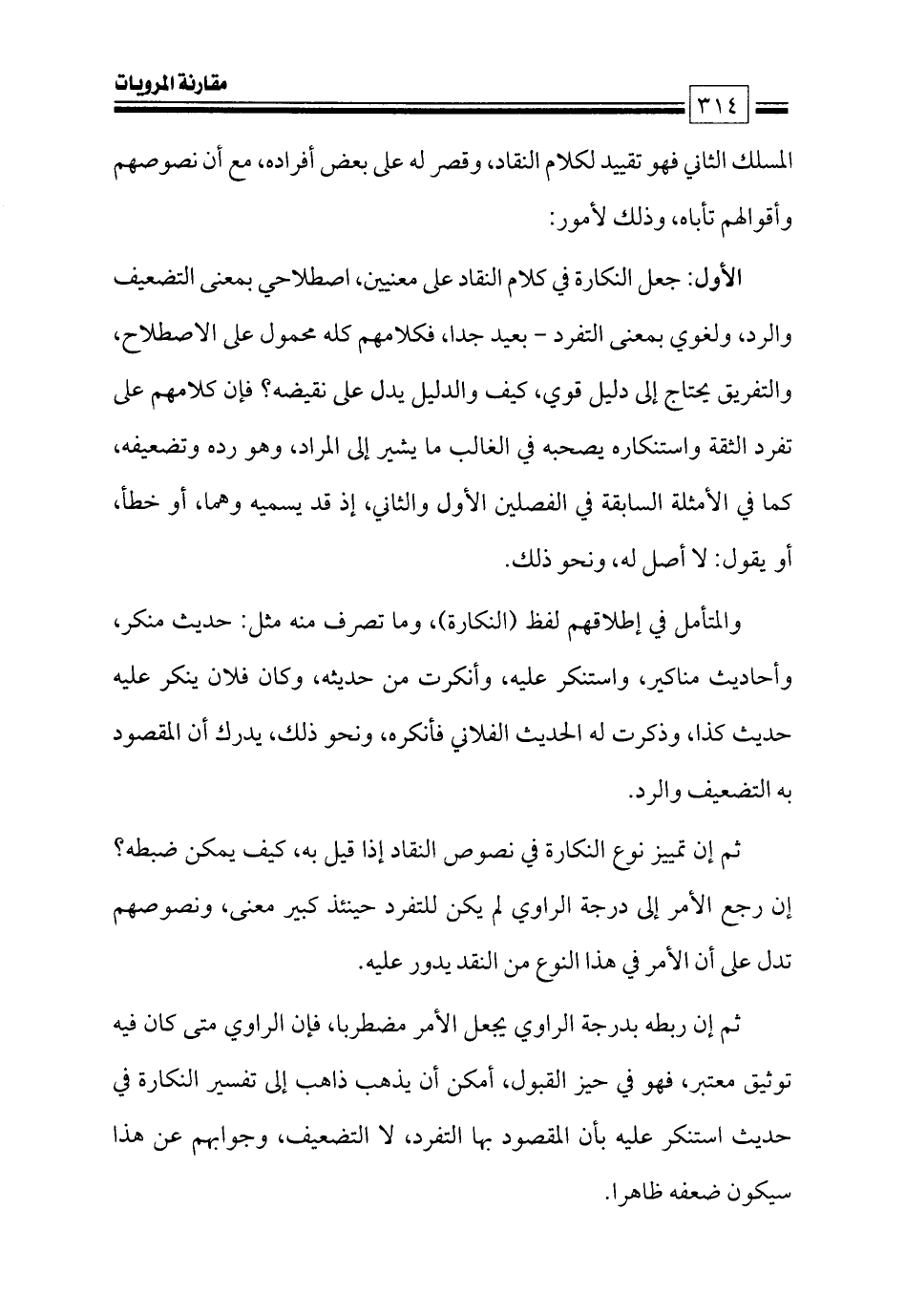ثم إن تمييز نوع النكارة في نصوص النقاد إذا قيل به، كيف يمكن ضبطه؟ إن رجع الأمر إلى درجة الراوي لم يكن للتفرد حينئذ كبير معنى، ونصوصهم تدل على أن الأمر في هذا النوع من النقد يدور عليه.