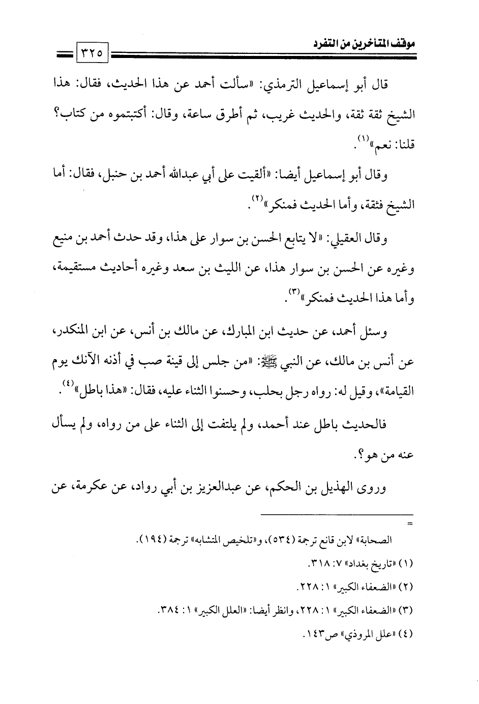 (¬٣) «الضعفاء الكبير» ١: ٢٢٨، وانظر أيضا: «العلل الكبير» ١: ٣٨٤.