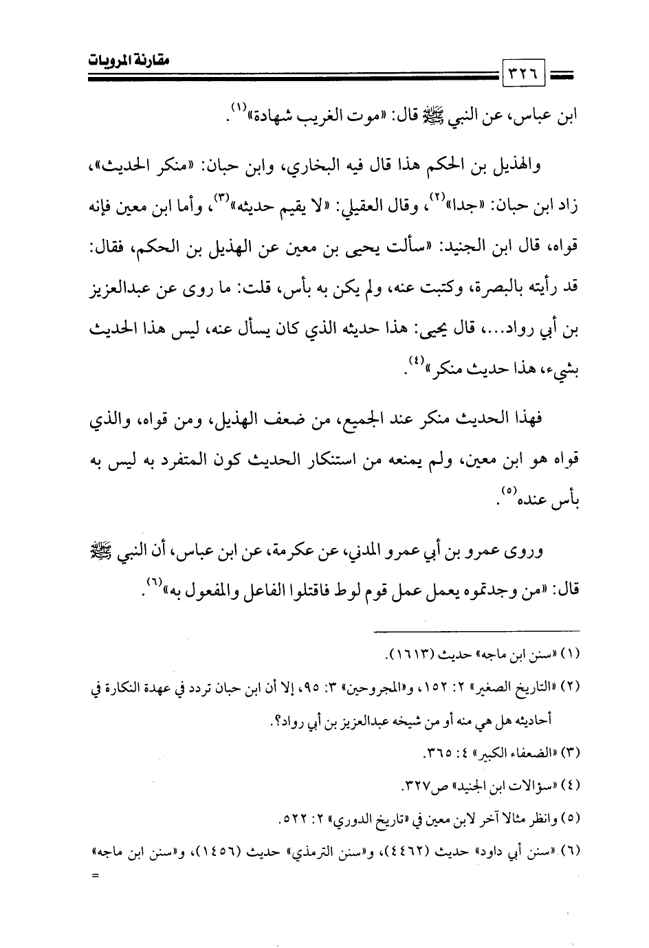(¬٢) «التاريخ الصغير» ٢: ١٥٢، و «المجروحين» ٣: ٩٥، إلا أن ابن حبان تردد في عهدة النكارة في أحاديثه هل هي منه أو من شيخه عبدالعزيز بن أبي رواد؟ .