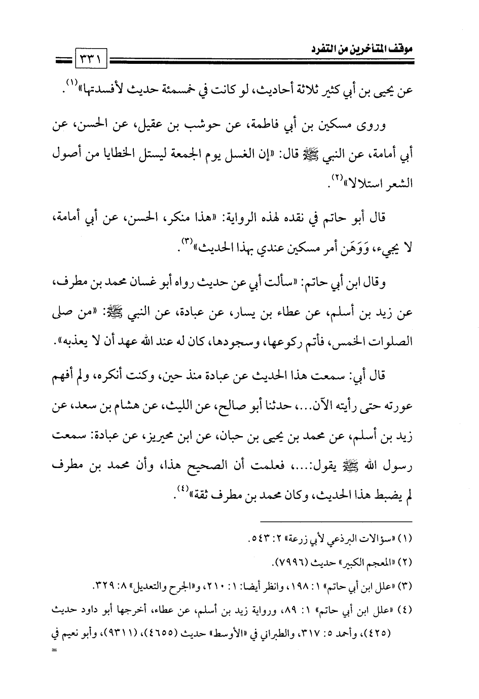 (¬٣) «علل ابن أبي حاتم» ١: ١٩٨، وانظر أيضا: ١: ٢١٠، و «الجرح والتعديل» ٨: ٣٢٩.