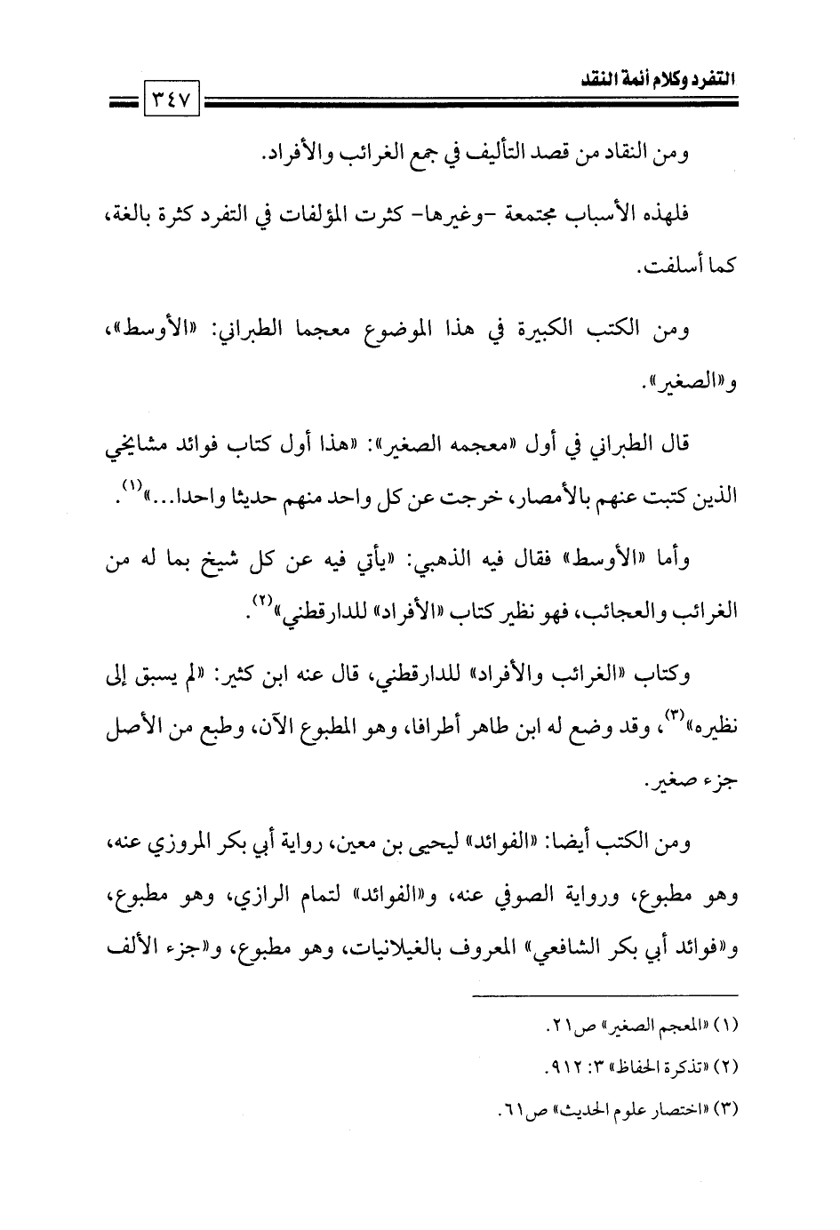 وكتاب «الغرائب والأفراد» للدارقطني، قال عنه ابن كثير: «لم يسبق إلى نظيره» (¬٣)، وقد وضع له ابن طاهر أطرافا، وهو المطبوع الآن، وطبع من الأصل جزء صغير.