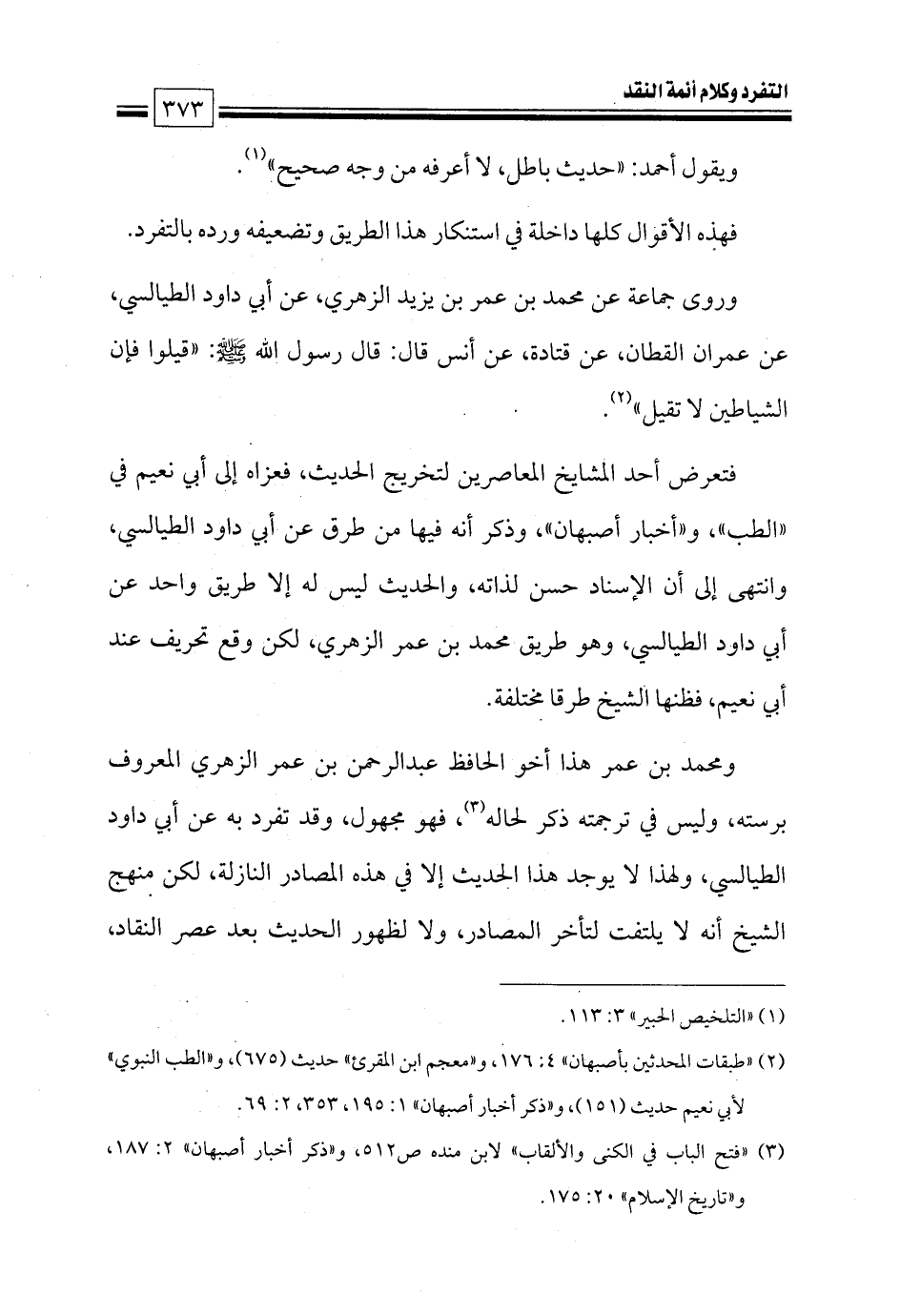 (¬١) «التلخيص الحبير» ٣: ١١٣.