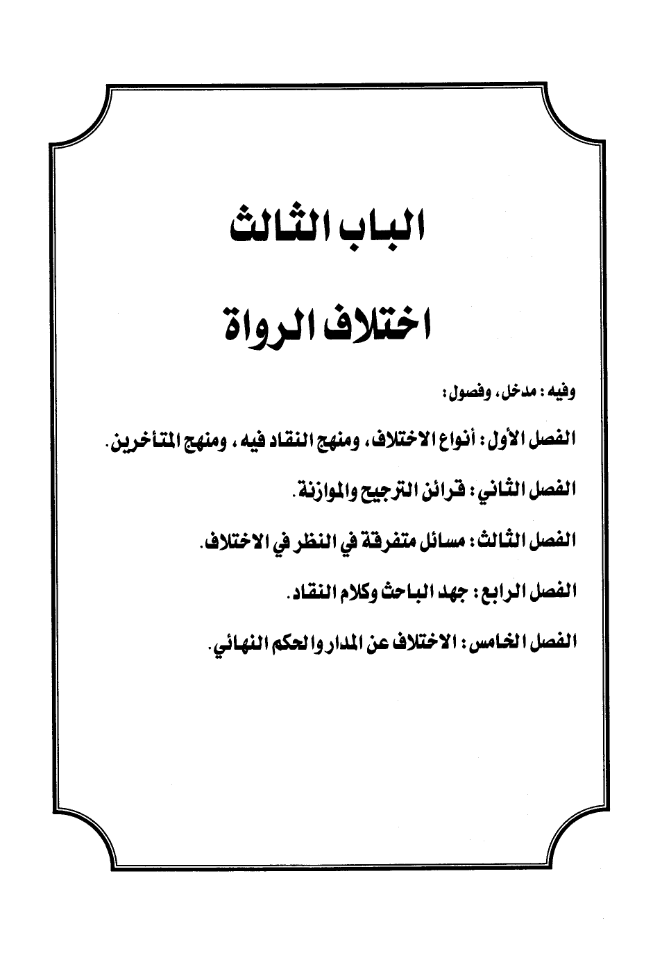 الفصل الثالث: مسائل متفرقة في النظر في الاختلاف.