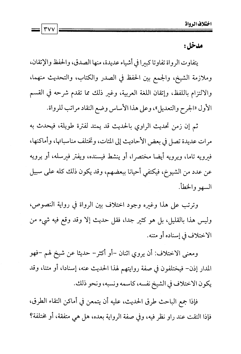 وترتب على هذا وغيره وجود اختلاف بين الرواة في رواية النصوص، وليس هذا بالقليل، بل هو كثير جدا، فقل حديث إلا وقد وقع فيه شيء من الاختلاف في إسناده أو متنه.