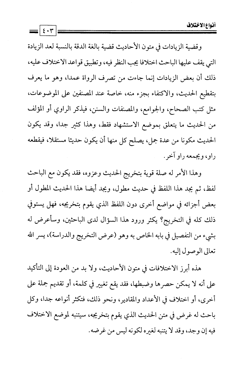 هذه أبرز الاختلافات في متون الأحاديث، ولا بد من العودة إلى التأكيد على أنه لا يمكن حصرها وضبطها، فقد يقع تغيير في كلمة, أو تقديم جملة على أخرى, أو اختلاف في الأعداد والمقادير, ونحو ذلك, فتكثر أنواعه جدا، وكل باحث له غرض في متن الحديث الذي يقوم بتخريجه، سيتنبه لموضع الاختلاف فيه إن وجد، وقد لا يتنبه لغيره لكونه ليس من غرضه.