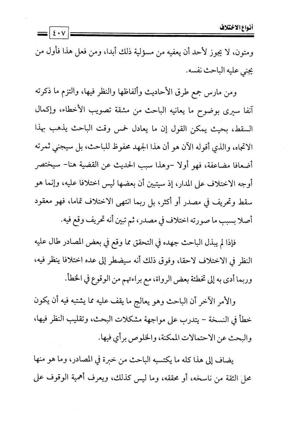 ومن مارس جمع طرق الأحاديث وألفاظها والنظر فيها، والتزم ما ذكرته آنفا سيرى بوضوح ما يعانيه الباحث من مشقة تصويب الأخطاء، وإكمال السقط، بحيث يمكن القول إن ما يعادل خمس وقت الباحث يذهب بهذا الاتجاه، والذي أقوله الآن هو أن هذا الجهد محفوظ للباحث، بل سيجني ثمرته أضعافا مضاعفة، فهو أولا -وهذا سبب الحديث عن القضية هنا- سيختصر أوجه الاختلاف على المدار، إذ سيتبين أن بعضها ليس اختلافا عليه، وإنما هو سقط وتحريف في مصدر أو أكثر، بل ربما انتهى الاختلاف تماما، فهو معقود أصلا بسبب ما صورته اختلاف في مصدر، ثم تبين أنه تحريف وقع فيه.
