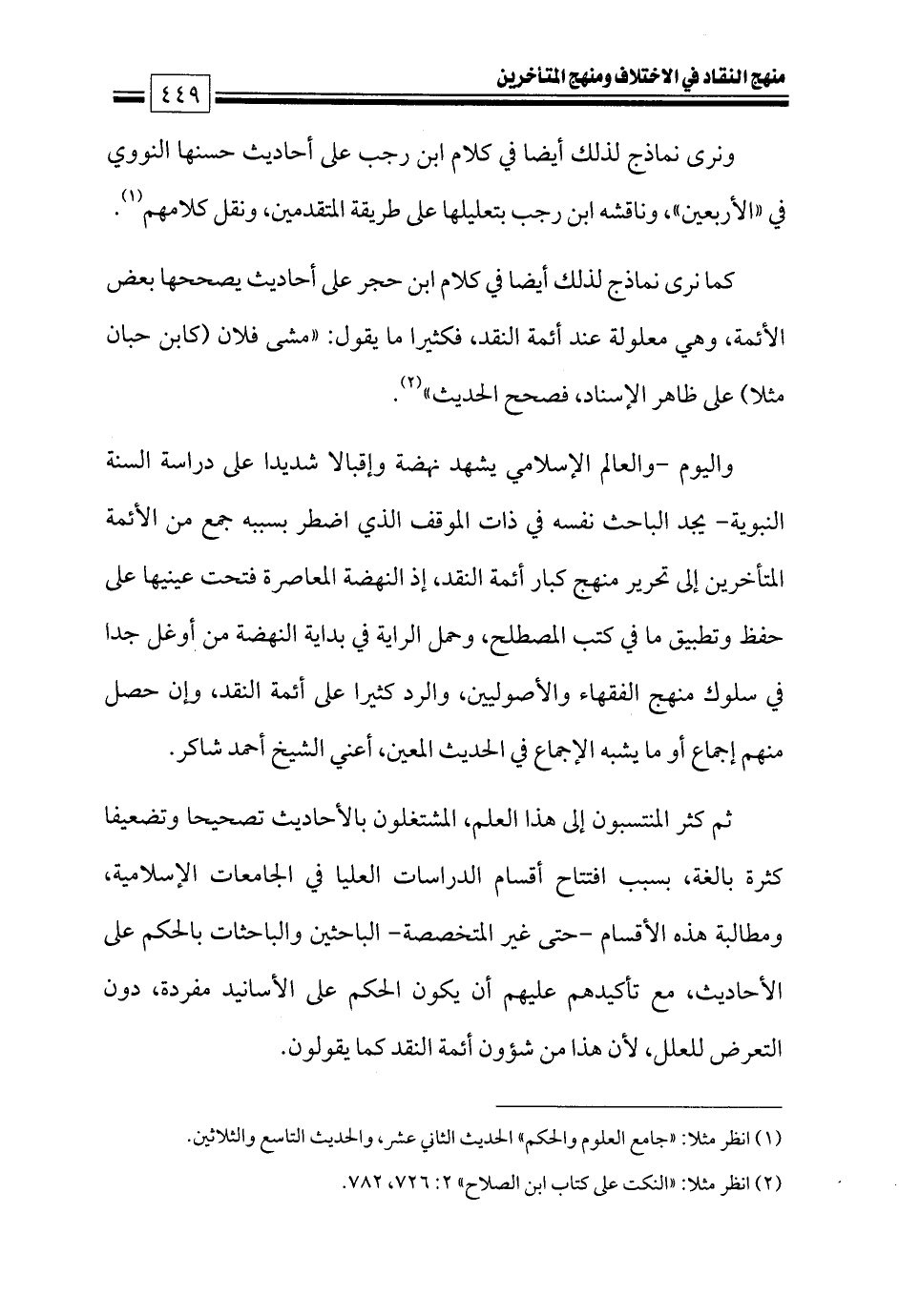 (¬٢) انظر مثلا: «النكت على كتاب ابن الصلاح» ٢: ٧٢٦، ٧٨٢.