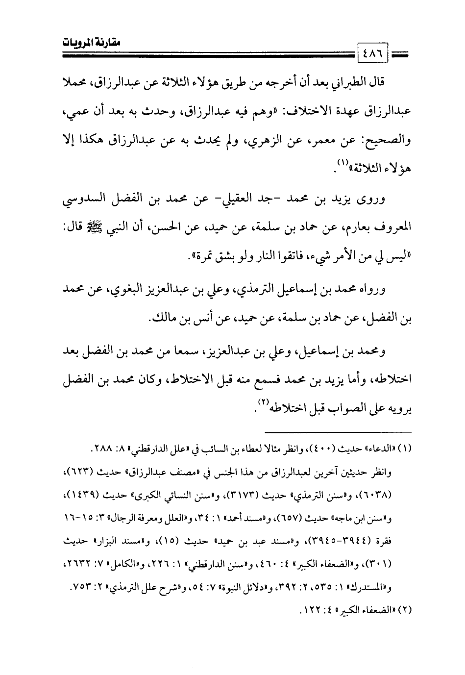 (¬٢) «الضعفاء الكبير» ٤: ١٢٢.
