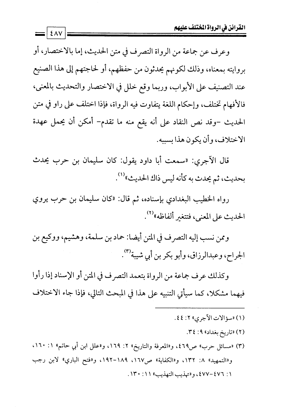 قال الآجري: «سمعت أبا داود يقول: كان سليمان بن حرب يحدث بحديث، ثم يحدث به كأنه ليس ذاك الحديث» (¬١).