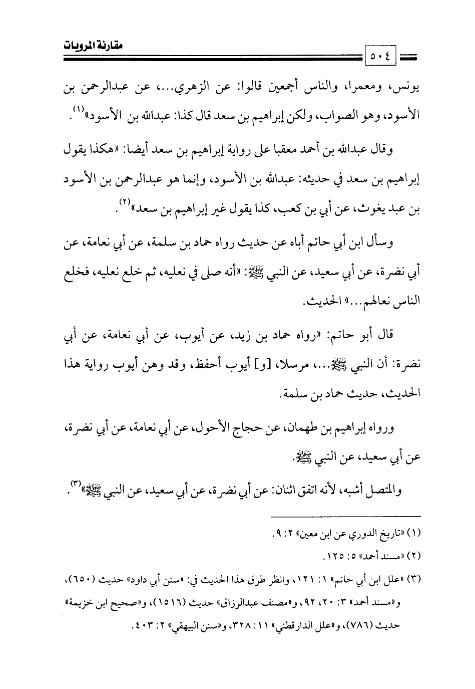 (¬٣) «علل ابن أبي حاتم» ١: ١٢١، وانظر طرق هذا الحديث في: «سنن أبي داود» حديث (٦٥٠)، و «مسند أحمد» ٣: ٢٠، ٩٢، و «مصنف عبدالرزاق» حديث (١٥١٦)، و «صحيح ابن خزيمة» حديث (٧٨٦)، و «علل الدارقطني» ١١: ٣٢٨، و «سنن البيهقي» ٢: ٤٠٣.