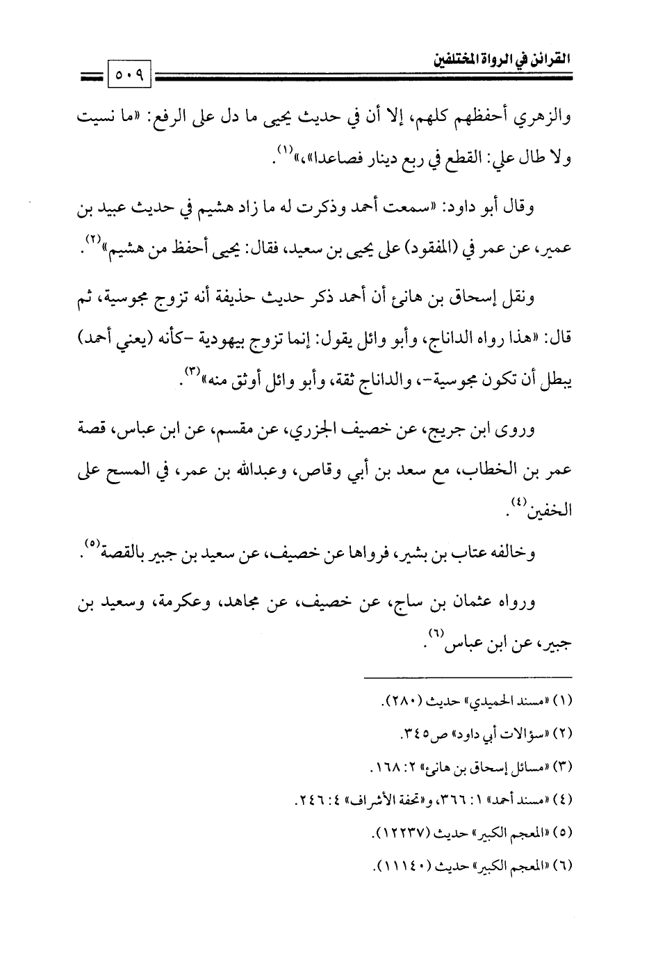وقال أبو داود: «سمعت أحمد وذكرت له ما زاد هشيم في حديث عبيد بن عمير، عن عمر في (المفقود) على يحيى بن سعيد، فقال: يحيى أحفظ من هشيم» (¬٢).