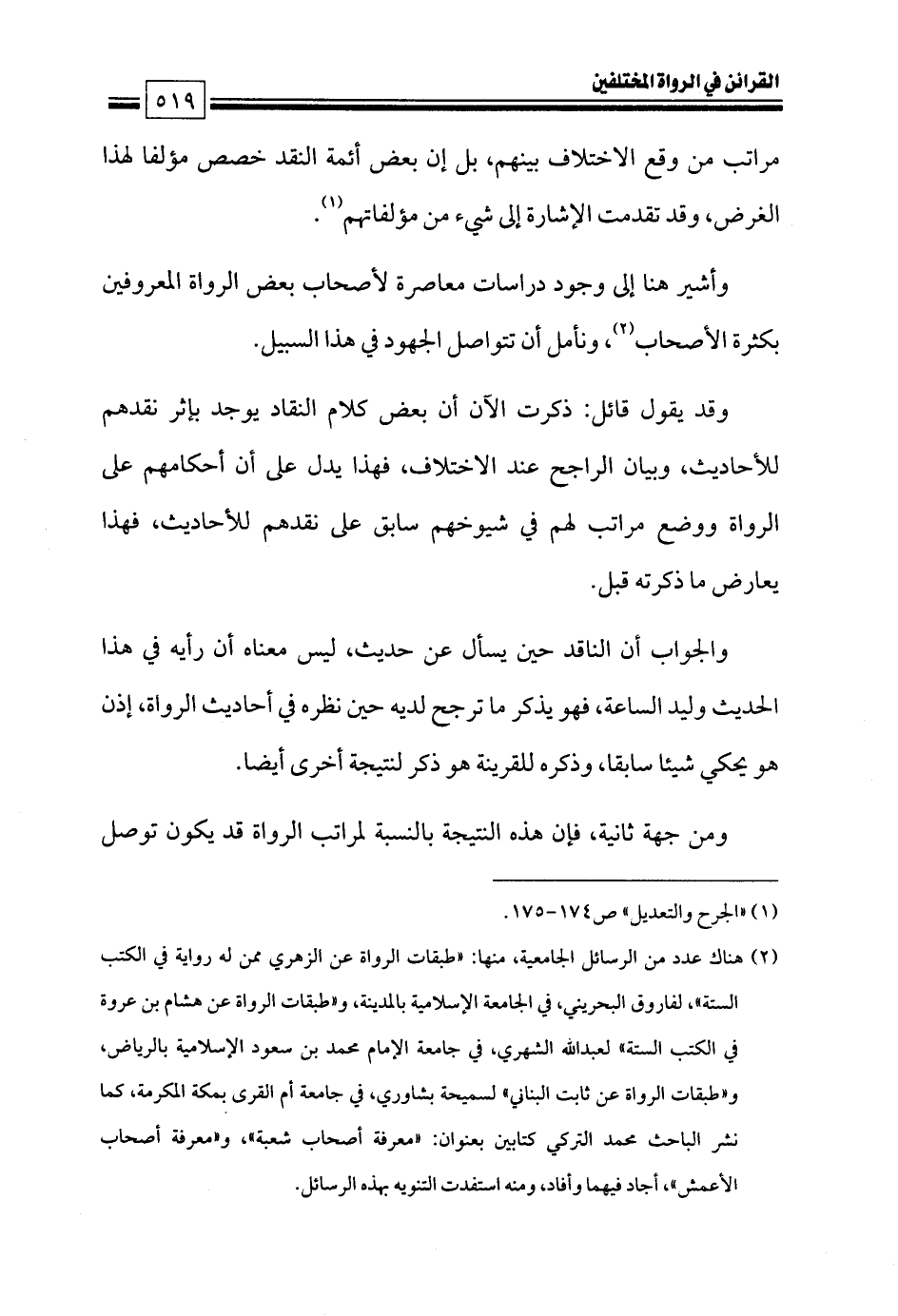 (¬٢) هناك عدد من الرسائل الجامعية، منها: «طبقات الرواة عن الزهري ممن له رواية في الكتب الستة»، لفاروق البحريني، في الجامعة الإسلامية بالمدينة، و «طبقات الرواة عن هشام بن عروة في الكتب الستة» لعبدالله الشهري، في جامعة الإمام محمد بن سعود الإسلامية بالرياض، و «طبقات الرواة عن ثابت البناني» لسميحة بشاوري، في جامعة أم القرى بمكة المكرمة، كما نشر الباحث محمد التركي كتابين بعنوان: «معرفة أصحاب شعبة»، و «معرفة أصحاب الأعمش»، أجاد فيهما وأفاد، ومنه استفدت التنويه بهذه الرسائل.