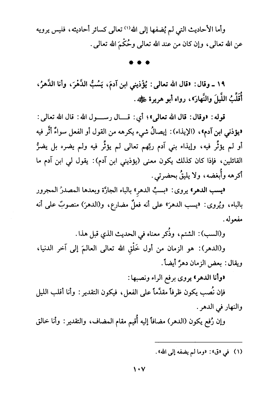 19 - وقال: "قال الله تعالى: يُؤْذيني ابن آدمَ، يَسُبُّ الدَّهْرَ، وأنا الدَّهرُ، أُقَلِّبُ اللَّيلَ والنَّهارَ"، رواه أبو هريرة - رضي الله عنه -.