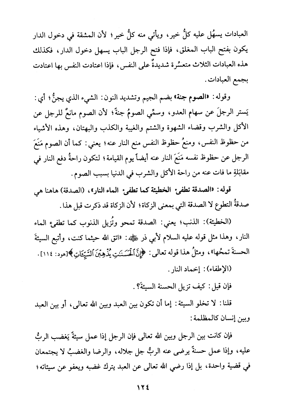 قوله: "الصدقة تطفئ الخطيئة كما تطفئ الماء النار"، (الصدقة) ها هنا هي صدقةُ التطوع لا الصدقة التي بمعنى الزكاة؛ لأن الزكاة قد ذكرت قبل هذا.