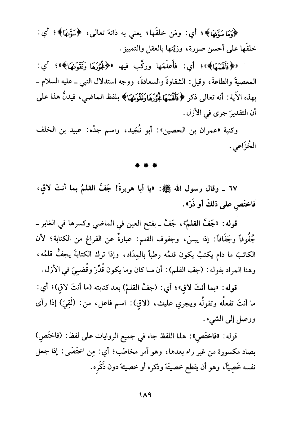 67 - وقال رسول الله - صلى الله عليه وسلم -: "يا أبا هريرةَ! جَفَّ القلمُ بما أنتَ لاقٍ، فاختَصِ على ذلكَ أو ذَرْ".