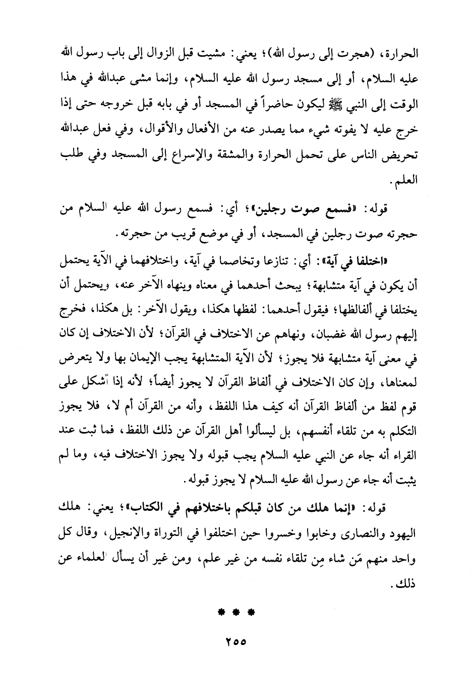 "اختلفا في آية": أي: تنازعا وتخاصما في آية، واختلافهما في الآية يحتمل أن يكون في آية متشابهة؛ يبحث أحدهما في معناه وينهاه الآخر عنه، ويحتمل أن يختلفا في ألفالظها؛ فيقول أحدهما: لفظها هكذا، ويقول الآخر: بل هكذا، فخرج إليهم رسول الله غضبان، ونهاهم عن الاختلاف في القرآن؛ لأن الاختلاف إن كان في معنى آية متشابهة فلا يجوز؛ لأن الآية المتشابهة يجب الإيمان بها ولا يتعرض لمعناها، وإن كان الاختلاف في ألفاظ القرآن لا يجوز أيضًا؛ لأنه إذا أشكل على قوم لفظ من ألفاظ القرآن أنه كيف هذا اللفظ، وأنه من القرآن أم لا، فلا يجوز التكلم به من تلقاء أنفسهم، بل ليسألوا أهل القرآن عن ذلك اللفظ، فما ثبت عند القراء أنه جاء عن النبي عليه السلام يجب قبوله ولا يجوز الاختلاف فيه، وما لم يثبت أنه جاء عن رسول الله عليه السلام لا يجوز قبوله.