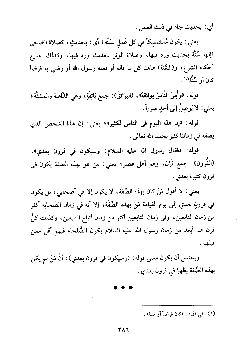 ويحتمل أن يكون معنى قوله: (وسيكون في قرون بعدي): أنَّ مَنْ لم يكن بهذه الصِّفة يظهرُ في قرون بعدي.