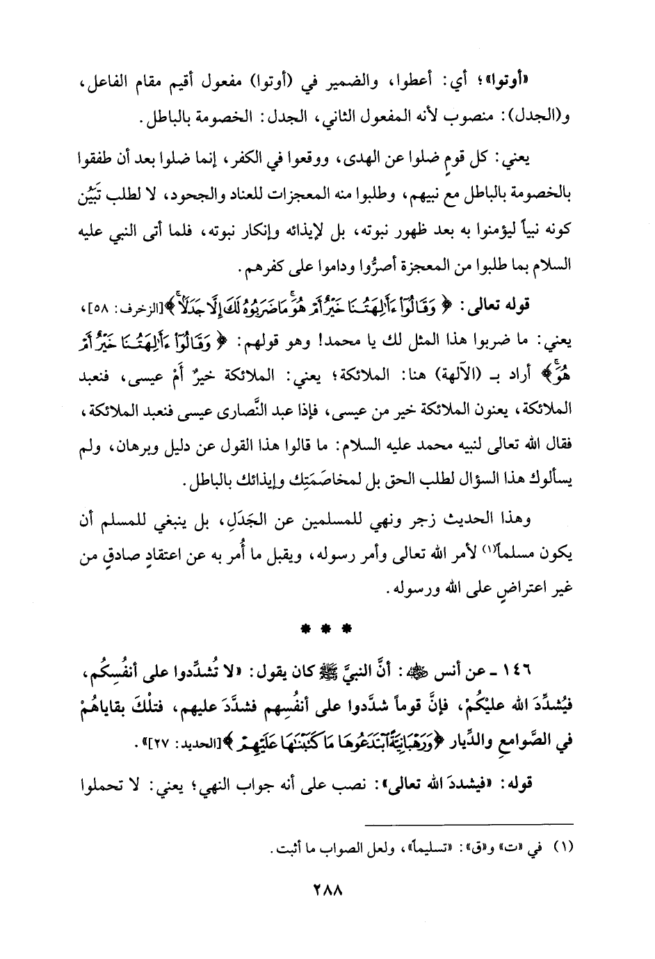 146 - عن أنس - رضي الله عنه -: أنَّ النبيَّ - صلى الله عليه وسلم - كان يقول: "لا تُشدِّدوا على أنفُسِكُم، فيُشدِّدَ الله عليْكُمْ، فإنَّ قومًا شدَّدوا على أنفُسِهم فشدَّدَ عليهم، فتلْكَ بقاياهُمْ في الصَّوامعِ والدِّيار {وَرَهْبَانِيَّةً ابْتَدَعُوهَا مَا كَتَبْنَاهَا عَلَيْهِمْ} [الحديد: 27] ".