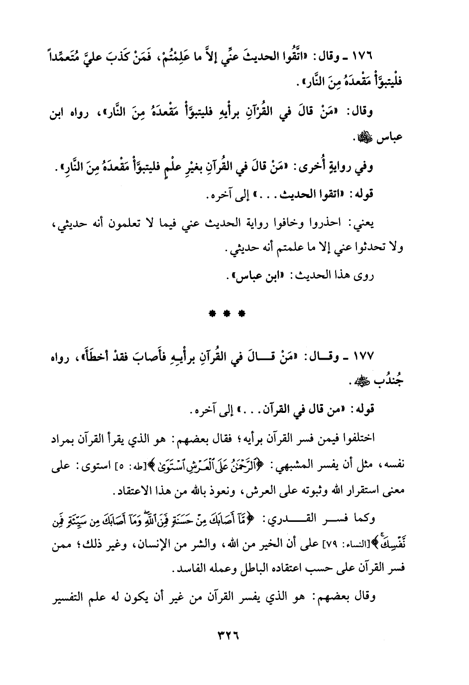 177 - وقال: "مَنْ قالَ في القُرآنِ برأْيِهِ فأَصابَ فقدْ أخطَأَ"، رواه جُندُب - رضي الله عنه -.