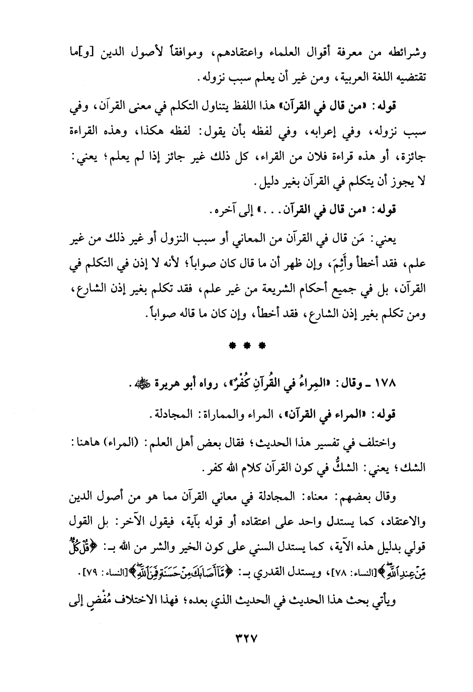 178 - وقال: "المِراءُ في القُرآنِ كُفْرٌ"، رواه أبو هريرة - رضي الله عنه -.