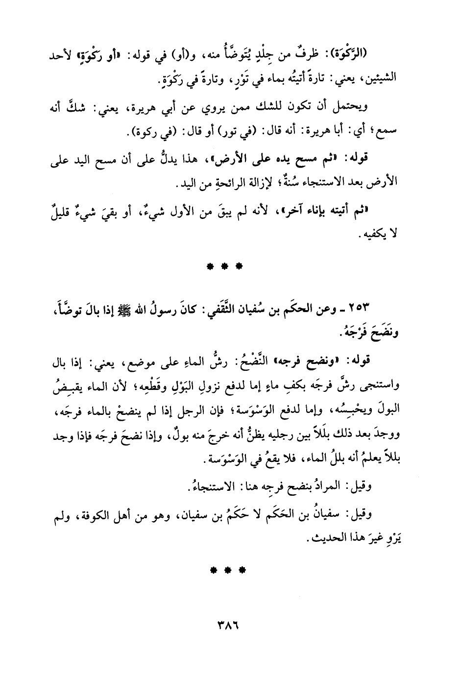 253 - وعن الحكَم بن سُفيان الثَّقَفي: كانَ رسولُ الله - صلى الله عليه وسلم - إذا بالَ توضَّأَ، ونَضَحَ فَرْجَهُ.