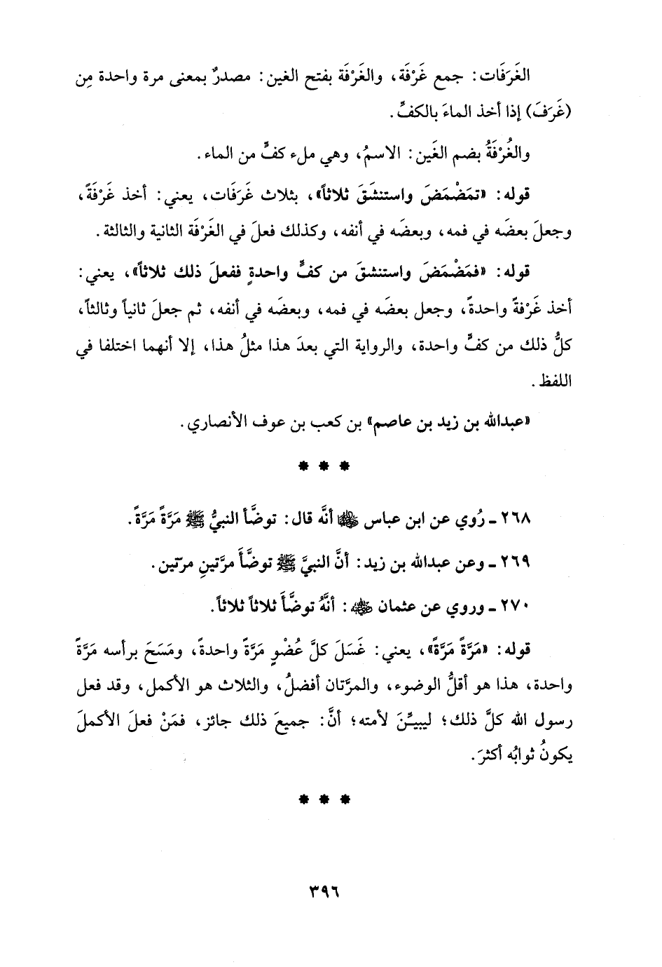270 - وروي عن عثمان - رضي الله عنه -: أنَّهُ توضَّأَ ثلاثًا ثلاثًا.