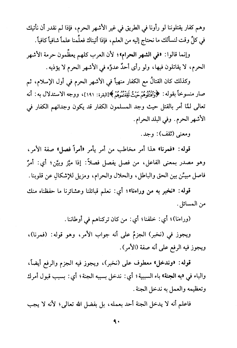وهم كفار يقتلوننا لو رأونا في الطريق في غير الأشهر الحرم، فإذا لم نقدر أن نأتيك في كلِّ وقت لنسألك ما نحتاج إليه من العلم، فإذا أتيناك فعلِّمنا علمًا شافيًا كافيًا.
