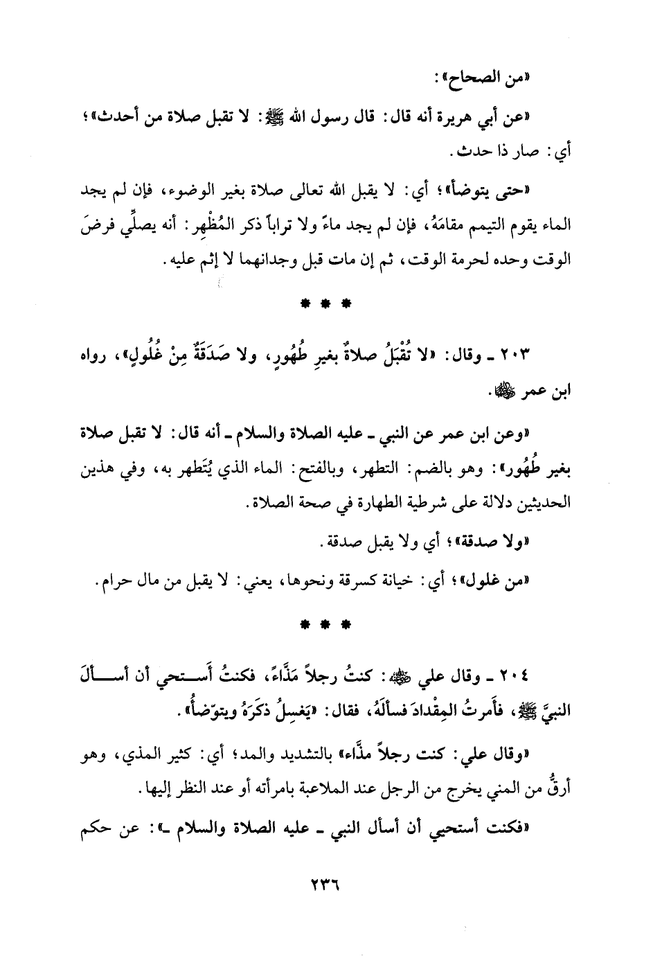 203 - وقال: "لا تُقْبَلُ صلاةٌ بغيرِ طُهُورٍ، ولا صَدَقَةٌ مِنْ غُلُولٍ"، رواه ابن عمر - رضي الله عنهما -.