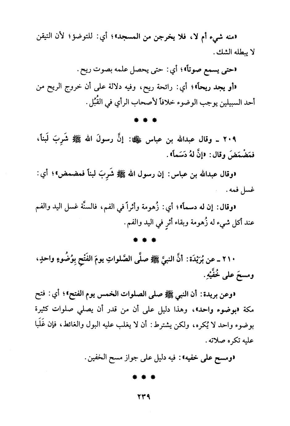 209 - وقال عبد الله بن عباس - رضي الله عنهما -: إنَّ رسولَ الله - صلى الله عليه وسلم - شَرِبَ لَبنًا، فمَضْمَضَ وقال: "إنَّ لهُ دَسَمًا".