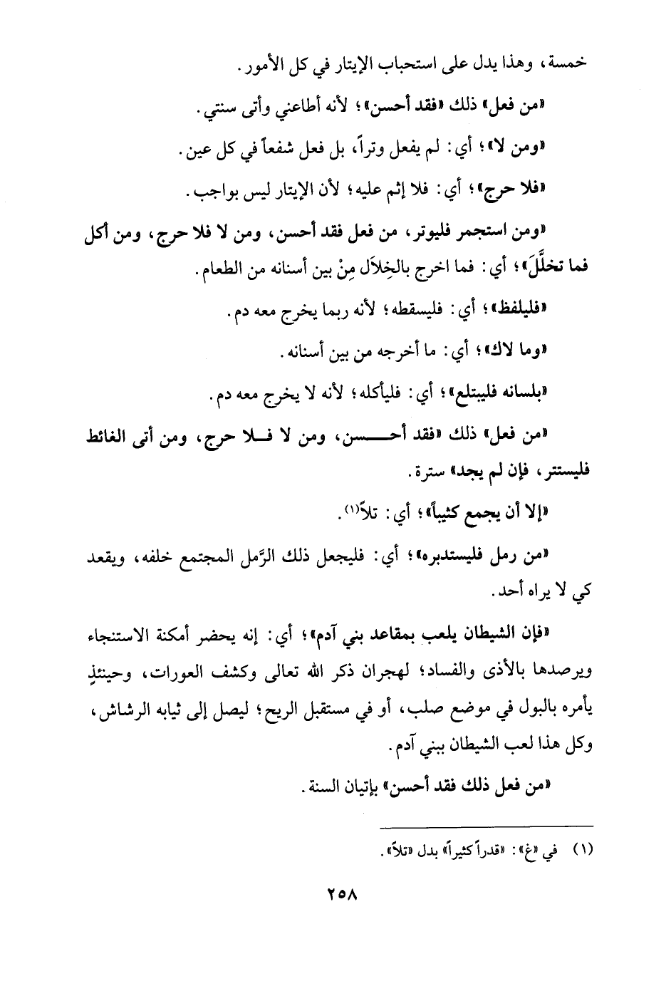 "من فعل ذلك فقد أحسن" بإتيان السنة.