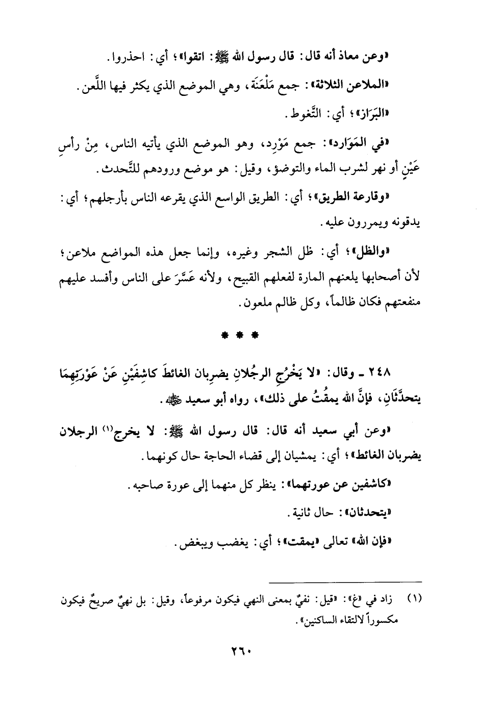 248 - وقال: "لا يَخْرُجِ الرجُلانِ يضرِبان الغائطَ كاشِفَيْنِ عَنْ عَوْرَتِهِمَا يتحدَّثَانِ، فإنَّ الله يمقُتُ على ذلك"، رواه أبو سعيد - رضي الله عنه -.