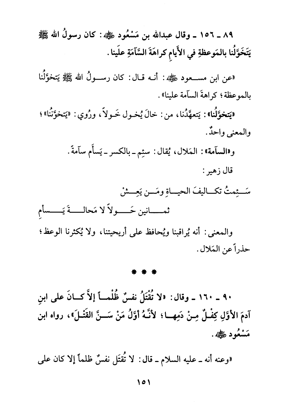 89 – 156 – وقال عبد الله بن مسعود رضي الله عنه: كان رسول الله صلى الله عليه وسلم يتخولنا بالموعظة في الأيام كراهة السآمة علينا.