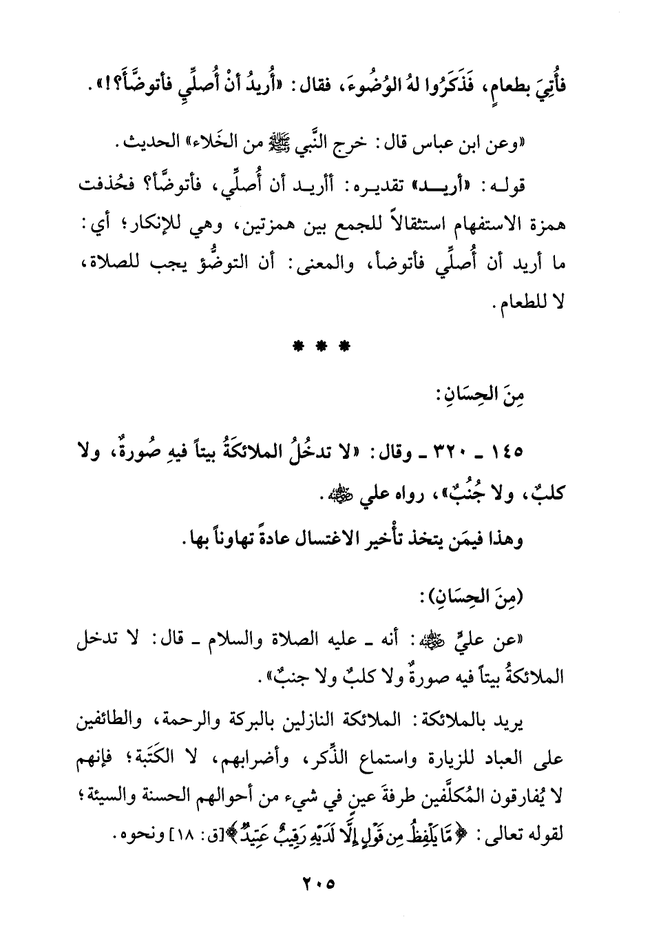 145 - 320 - وقال:" لا تدخل الملائكة بيتا فيه صورة , ولا كلب , ولا جنب "روا علي رضي الله عنه.