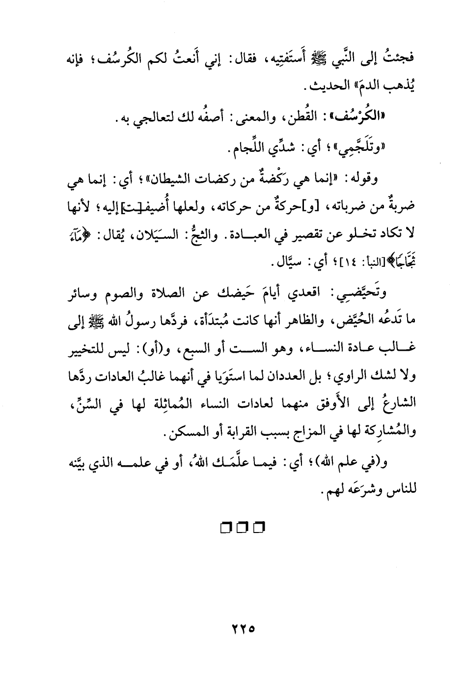 فجئت إلى النبي صلى الله عليه وسلم أستفتيه , فقال: إني أنعت لكم الكرسف , فإنه يذهب الدم " الحديث.