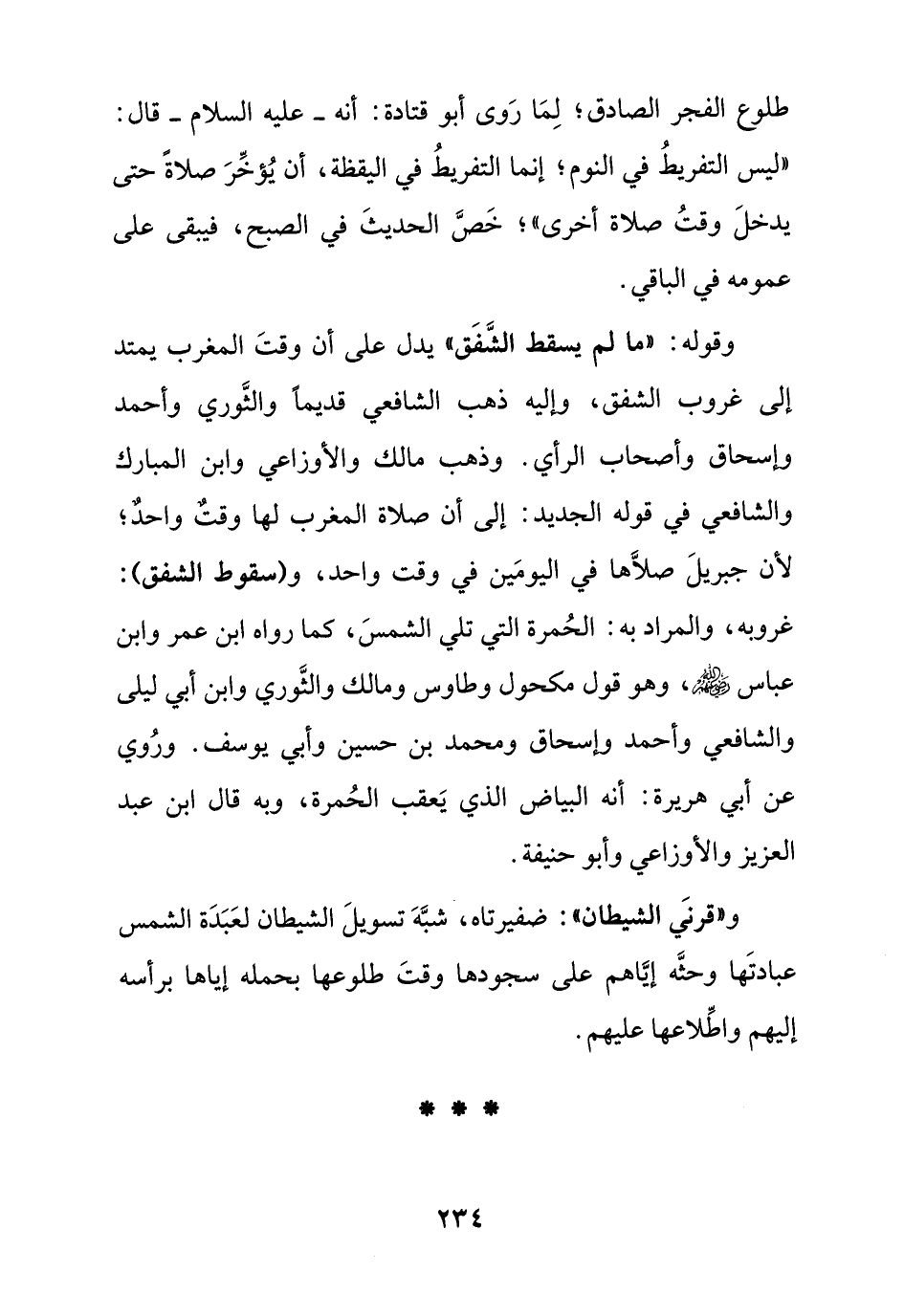 وقوله:" ما لم يسقط الشفق " يدل على أن وقت المغرب يمتد إلى غروب الشفق , وإليه ذهب الشافعي قديما والثوري وأحمد وإسحاق وأصحاب الرأي. وذهب مالك والأوزاعي وابن المبارك والشافعي في قوله الجديد: إلى أن صلاة المغرب لها وقت واحد , لأن جبريل صلاها في اليومين في وقت واحد , و (سقوط الشفق): غروبه , والمراد به: الحمرة التي تلي الشمس , كما رواه ابن عمر وابن عباس رضي الله عنهم , وهو قول مكحول وطاوس ومالك والثوري وابن أبي ليلى والشافعي وأحمد وإسحاق ومحمد بن حسين وأبي يوسف.,وروي عن أبي هريرة: أنه البياض الذي يعقب الحمرة , وبه قال ابن عبد العزيز والأوزاعي وأبو حنيفة.