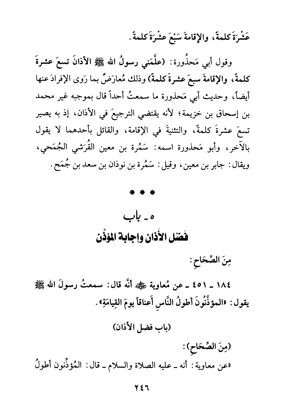 184 - 451 - عن معاوية رضي الله عنه أنه قال: سمعت رسول الله صلى الله عليه وسلم يقول:" المؤذنون أول الناس أعناقا يوم القيامة ".